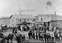 Nicodemus, Kansas began as what would now be called a real estate development. Six black entrepreneurs and a white developer founded the Nicodemus Development Corporation.[7] They then recruited groups of homesteaders from Scott and Fayette Counties, Kentucky, followed by other recruits from both Kentucky and Mississippi. The homesteaders migrated together, but about half of the initial recruits returned to their home states after visiting the bleak site in the Solomon River Valley.[5] Nevertheless, 300 to 400 settlers stayed and developed their farms and the community during the 1880s. Today, only about a dozen residents remain. Nicodemus is now a national historic site.[7]