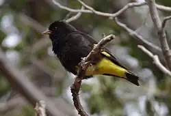 The black siskin (Spinus atratus) is a species of finch in the family Fringillidae. It is found in Argentina, Bolivia, Chile, and Peru. Its natural habitats are subtropical or tropical high-altitude shrubland and subtropical or tropical high-altitude grassland.