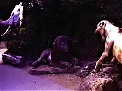 Later in the 1980 further fibreglass dinosaurs were added to the original six. On park maps in 1972 Dinosaurland is named Dinosaur Zoo. This name was changed to Dinosaurland This area was upgraded with new animatronic dinosaur figures to become 'Restricted Area 5' in 2014. Some of the original static models were retained. |