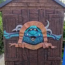 | Rumpus Clock Tower | 1994 | 2005 | Animated clock tower which formed the entrance to the bridge towards Rumpus Mansion. At fifteen and thirty minute intervals, various monsters and goblins emerged from behind doors. Upon the hour, a trow lifted the roof up, and two giant gargoyles next to the clock rocked back and forth. A surviving goblin can be found at the entrance to the current fairyland . A surviving gargoyle can be found near rumpus lawn by a pathway. | ![]() | |