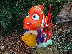 Also in Nurseryland is the wishing tree, a tree that houses a family of musical pixies. A vicar on a seat provides a popular photo opportunity, along with a toadstool which since the 1990s has had its date changed annually to the corresponding year. Nurseryland was sited on an area previously on park maps named as the fern Glen. It was expanded for the 1980 season with new additions. Little Miss Muffet was removed circa 2020. As of 2025 NurseryLand has a new perimeter fence . As of 2025 a new entrance pathway is going in nearer the chine café. As of 2025 the NurseryLand lookout viewpoint platform and talking telescope have been removed due to continual cliff erosion in the area . |