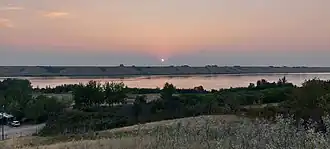 Blackstrap Lake is a man-made lake that was created in 1967 as a water reservoir for agricultural, industrial, and recreational uses. Saskatoon was awarded the 1971 Canada Winter Games and land was acquired along the reservoir to build a man-made mountain, Mount Blackstrap, for the downhill events. In 1986, much of the eastern shore of the lake, including Mount Blackstrap, became the provincial park.[3] Water used to flood and maintain the lake is gravity fed via an earthen aqueduct from Lake Diefenbaker. Local legend claims that the name for the region is derived from an incident involving the breaking of a barrel of blackstrap molasses during transport through the valley, thereafter becoming known as Blackstrap.[4]
