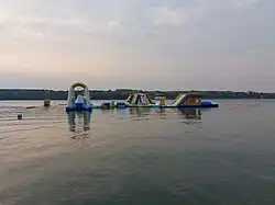 At the main beach, Sask Aquatic Adventures has a water adventure park set-up just off shore. It is one of several such water adventure parks in Saskatchewan.[14]