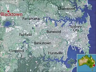 ![]() Aerial view of Blacktown looking northeast | |||||||||||||||