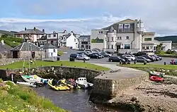 Blackwaterfoot (Scottish Gaelic: Bun na Uisge Dubh lit. 'foot of the black water') is a village on the Isle of Arran in the Firth of Clyde, Scotland. The village is within the parish of Kilmory.[1] It is located in the Shiskine valley in the south-west of the island. It is one of the smaller villages of Arran and home to one of Europe's two 12-hole golf courses. Nearby Drumadoon Point is home to the largest Iron Age fort on Arran. Further north is the King's Cave, reputed to be a hiding place of Robert the Bruce.