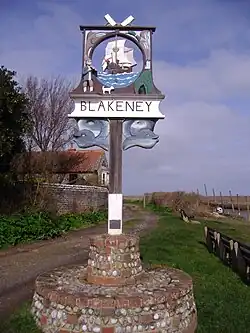 The village sign in Blakeney (March 2009) | |