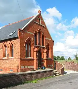 The parish contains one building designated by English Heritage as a listed building. This is Blakenhall Farmhouse, which is listed at Grade II.[30] Grade II is the lowest of the three gradings given to listed buildings and is granted to "buildings of national importance and special interest".[31] The farmhouse dates from the 17th century, and is constructed in brick with a tiled roof. It is in two storeys, and has a three-bay entrance front with three gabled dormers. Inside the farmhouse is an inglenook with a bressumer.[30] A red-brick former Wesleyan Methodist chapel in Blakenhall village dates from 1900.[2]