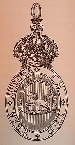 When the Royal Guelphic Order was established in 1815 it originally had no officer of arms. Blanc Coursier at the time, Sir George Nayler, was able to have an additional statute passed appointing him King of Arms of the Order.[7] His successor as Blanc Coursier, Walter Blount also held this position.[8]