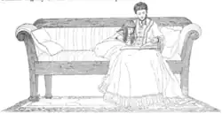 Such chronological details were noted only as proving conscientious research even in childish matters. For the most part, the artist chose the early Victorian fashions—men in peg-top plaid trousers; women in crinolines, angel sleeves, lockets, and hair-nets; little girls in pig-tails and pantalettes. Here were delectable and varied decorations breathing a sort of innocent drollery, what M. de Monvel called "a precious quality of naivete". Her illustrations for Max Müller's "Memories," were stamped with unusual breadth and proportion.[1]