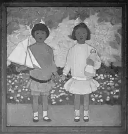 Blanche Adele Ostertag (August 27, 1872 – November 13, 1915) was an American decorative artist. She is best remembered for her decorative painting and delight in children as subjects.[1] Born in St. Louis, Missouri, she first studied for one month at the St. Louis Museum of Fine Arts in 1892 and then moved to Paris.[2] At the Académie Julian, she was a pupil of Rodolphe Julian, Jean-Paul Laurens, Constant, and also studied with Raphael Collin, Léon-Augustin Lhermitte, and Delance.[2] Her awards include the Revell prize, for school room decoration, St. Louis. Her work includes mural decorations: "Sailing of the Claremont," New Amsterdam Theatre, New York; "Old Indian Fort," Northwestern Railway Station, Green Bay, Wisconsin; "Everlasting Covenant" (5 panels), "The Songs of David" (3 panels), and mosaics, Husser House, Chicago; Illustrations for "Old Songs for Young America."[3] She exhibited in Champ de Mars Salons (1895, 1896) and was a member of the Society of Western Artists. [4][5]