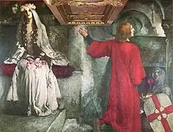 The 24th carmen in Carl Orff's Carmina Burana is subtitled "Blanziflor et Helena", after the line of the poem "Blanziflor et Helena, Venus generosa!".[19] The original Carmina Burana poem, named Si linguis angelicis Loquar et humanis[a] from its first line, of which Orff's is but a middle part, begins with what appear at first reading to be addresses to the Virgin Mary in Ave Maria style,[20][21] until reaching the "Blanziflor" line reveals the implication to be sexual rather than religious,[22][23] the "Helena" being Helen of Troy and the "Blanziflor" being the Blancheflour from Floris and Blancheflour.[24] The Marian imagery of decus virginum in the poem connects to Blanziflor in that another title of the Virgin Mary is lilium, the lily, for which "blanchefleur" is a French description.[19][25]