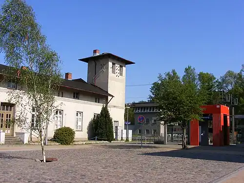 Both entrance buildings, the water tower and some railway workers houses north of the Bad Kleinen–Rostock line are listed on the heritage list of the district of Ludwigslust-Parchim.[6] However, both station buildings are empty and not in use. The old post office building in the station forecourt was partially demolished in 2009.[7]