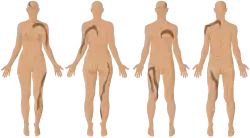 Alfred Blaschko, a private practice dermatologist from Berlin, first described and drew the patterns of the lines of Blaschko in 1901. He obtained his data by studying over 140 patients with various nevoid and acquired skin diseases and transposed the visible patterns the diseases followed onto dolls and statues, then compiled the patterns onto a composite schematic of the human body. He described a system of lines across the surface of the human body that nevi and dermatological diseases tended to follow, unrelated to the dermatomes of the body or any other cutaneous or subcutaneous structure.[14] In the same month of 1901, an American dermatologist named Douglas Montgomery presented his own research paper before the American Dermatological Society, based on his studies of extensive linear nevi in human patients. Similar to Blaschko, he suggested that the linear patterns of nevi followed "streams" of tissue growth that occurred during embryogenesis rather than being related to an epidermal structure.[15]