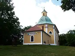 The Antonínský hill above the village with the small Chapel of Saint Anthony of Padua is the main pilgrimage site in Moravian Slovakia. The chapel was built in 1688 anc containts two murals painter by Jano Köhler. Part of the pilgrimage complex are the Stations of the Cross.[7]
