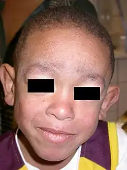 | Coarse facial features in a boy with Blau syndrome | |