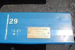 In 1996, New York Daily News columnist Filip "Flip" Bondy was asked to write a story from the fans' perspective. In that regular column, he took on the persona of "the Bleacher Creature," coining the nickname in relation to the Yankee Stadium inhabitants.[8] The term "bleacher creature" has been used in reference to dedicated fans and supporters since the early 1980s.[9][10] The founding of the Yankees Bleacher Creatures is often credited to Ali Ramirez.[11] Ramirez rang a cowbell to inspire the fans to cheer, much like Freddy Sez's efforts in the Stadium's main grandstand, during the team's limited success in the early 1980s and 1990s.[12][13] In 1986, a New York Daily News article stated that Ramirez went to almost every home Yankees game for more than 20 years.[14] Ramirez died on May 8, 1996, and was given a tribute by the Yankees front office before the May 14 game against the Seattle Mariners, a game in which Yankees pitcher Dwight Gooden threw a no-hitter.[15] There was a plaque where he sat, in section 39, row A, seat 29 which read "This seat is taken. In memory of Ali Ramirez, 'The Original Bleacher Creature.'"[13] A similar plaque was added to the new stadium.[16]