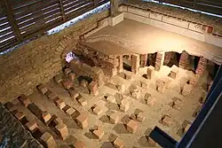 In the 4th century, a bronze workshop was established in the southeastern part of the complex, and the shops located to the south were repurposed.[B 3][C 3] The frigidarium was also repurposed.[C 6]