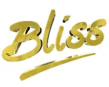 The Bliss logo was a gold colour with a shine effect moving across it every few seconds. The logo was placed in the bottom left-hand corner during music videos, and the song information was shown in a gold-coloured bar at the start and near the end of each music video. The channel's identity was also seen before and after advertisement breaks, when the Bliss logo would slowly come out of an opening flower.