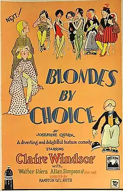 Blondes by Choice is an American silent comedy film directed by Hampton Del Ruth and starring Claire Windsor. The script was written by Josephine Quirk and Paul Perez.[1]