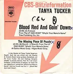 "Blood Red and Goin' Down" is a song written by Curly Putman, and recorded by American country music artist Tanya Tucker. It was released in June 1973 as the second single from Tucker's album What's Your Mama's Name. The single was Tucker's second number one on the country chart and would stay at number one for a single week and spend a total of twelve weeks on the chart.[1]
