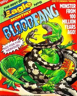 Bloodfang is a British comic character, appearing in strips published by IPC Magazines. The character featured in British comic stories published in the weekly anthology Eagle from 9 June 1984 to 30 March 1985, written by John Wagner and Alan Grant and drawn by Jim Baikie, Carlos Cruz González and Vanyo. The story followed the eponymous tyrannosaurus rex, initially in prehistoric times and then later in the year 2150.