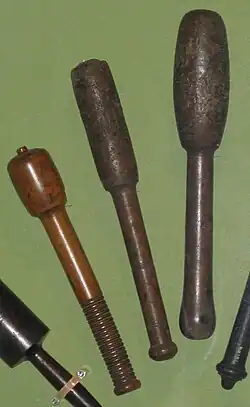 A number of different methods were employed. The most common was phlebotomy, or venesection (often called "breathing a vein"), in which blood was drawn from one or more of the larger external veins, such as those in the forearm or neck. In arteriotomy, an artery was punctured, although generally only in the temples. In scarification (not to be confused with scarification, a method of body modification), the "superficial" vessels were attacked, often using a syringe, a spring-loaded lancet, or a glass cup that contained heated air, producing a vacuum within (see fire cupping). There was also a specific bloodletting tool called a scarificator, used primarily in 19th century medicine. It has a spring-loaded mechanism with gears that snaps the blades out through slits in the front cover and back in, in a circular motion. The case is cast brass, and the mechanism and blades steel. One knife bar gear has slipped teeth, turning the blades in a different direction than those on the other bars. The last photo and the diagram show the depth adjustment bar at the back and sides.