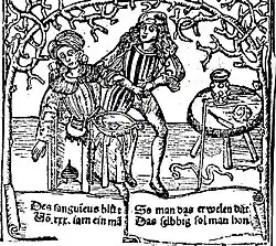 The Talmud recommended a specific day of the week and days of the month for bloodletting in the Shabbat tractate,[23] and similar rules, though less codified, can be found among Christian writings advising which saints' days were favourable for bloodletting. During medieval times bleeding charts were common, showing specific bleeding sites on the body in alignment with the planets and zodiacs.[22] Islamic medical authors also advised bloodletting, particularly for fevers. It was practised according to seasons and certain phases of the Moon in the lunar calendar. The practice was probably passed by the Greeks with the translation of ancient texts to Arabic and is different than bloodletting by cupping mentioned in the traditions of Muhammad. When Muslim theories became known in the Latin-speaking countries of Europe, bloodletting became more widespread. Together with cautery, it was central to Arabic surgery; the key texts Kitab al-Qanun and especially Al-Tasrif li-man 'ajaza 'an al-ta'lif both recommended it. It was also known in Ayurvedic medicine, described in the Susruta Samhita.