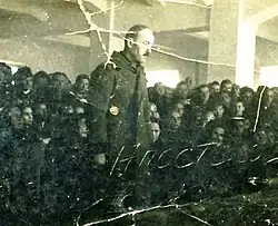 From the start of the new Socialist Republic of Macedonia, accusations surfaced that new authorities were involved in retribution against people who did not support the formation of the new ethnic Macedonian identity.[6] To wipe out the Bulgarophile sentiments of parts of the local population, the Yugoslav communists started a process of nation-building.[7] Bulgarian sources put the number of dead "traitors" and "collaborationists" due to organized killings of Bulgarians during Bloody Christmas and afterwards at around 1,200.[8] According to Bulgarian historian Dobrin Michev the idea was to weaken the Bulgarian intelligentsia in Macedonia, to eradicate the Bulgarian self-identification of parts of the population, and to speed-up the process of Macedonisation.[9] At the end of 1944, a law was passed for the protection of the Macedonian national honour, which persecuted people with a Bulgarian identity, pro-Bulgarian views, collaborationists or those who wanted more independence from Yugoslavia. A special court was also set up between April and August 1945 to implement the law.[10][11]