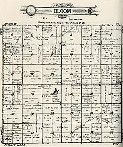 Organization of Bloom Township was approved by the Nobles County Board on March 18, 1879. The original choice of name for the township was Afton. However, the Nobles County Board was notified by the state auditor's office that another Afton Township existed in Washington County, Minnesota. The name was then changed to Bloom Township in honor of Peter Bloom, the township's first settler.[3] Afton Township in Washington County no longer exists, having been absorbed by the city of Afton, Minnesota, in 1971.[4]