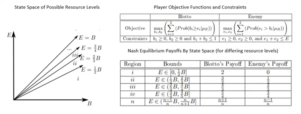 Macdonell and Mastronardi 2015 solution, proof, and graphical algorithm for identifying Nash equilibria strategies also pertains to generalized versions of the game such as when Colonel Blotto have differing valuations of the battlefields, when their resources have differing effectiveness on the two battlefields (e.g. one battlefield includes a water landing and Colonel Blotto's resources are Marines instead of Soldiers), and provides insights into versions of the game with three or more battlefields.