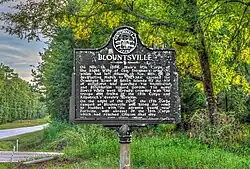 The first permanent settlement at Blountsville was made before 1817.[2] The community was named after the local Blount family.[2] A variant name was "Blountville".[1] A post office called Blountsville was established in 1819, and remained in operation until 1899.[3] After Blountsville was badly damaged in the Civil War, its population dwindled.[2]