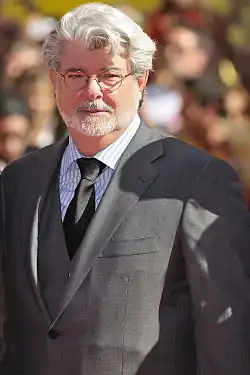 One of the Star Destroyers displays a bumper sticker reading "Bush – Cheney" a reference to United States President George W. Bush and his Vice President Dick Cheney's 2004 re-election campaign.[8] When Luke is watching the sunset, he breaks the fourth wall by introducing Star Wars composer John Williams and the London Symphony Orchestra, who have been scoring the scene, in a parody of a scene from Blazing Saddles featuring Count Basie and his orchestra.[8] Luke then asks the orchestra to play the theme of The People's Court.[8] Later in the episode when Luke finds his uncle and aunt murdered, he also finds that Williams and the entire orchestra have been killed as well; this saddens Luke, since the episode will now have to be scored by composer Danny Elfman before Luke decapitates him with his lightsaber.[8] While searching for R2-D2, Luke listens to conservative political commentator Rush Limbaugh's radio show, in which Limbaugh says that the "liberal galactic media is saying that the planet Hoth is melting".[8]