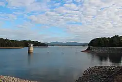 Blue Ridge was laid out in 1886 when the Marietta and North Georgia Railroad was extended to that point.[5] It was incorporated in 1887 by colonel Mike McKinney, who built the railroad.[6] In 1895, the seat of Fannin County was transferred to Blue Ridge from Morganton.[7]