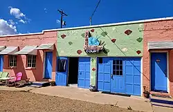The Blue Swallow Court in Tucumcari, New Mexico, United States, is a 12-unit L-shaped motel listed on the National Register of Historic Places in New Mexico as a part of historic U.S. Route 66. Original architectural features included a façade with pink stucco walls decorated with shell designs and a stepped parapet, on-site office and manager's residence, and garages located between the sleeping units for travelers to park their motorcars. It is one of the longest continuously operated motels along New Mexico's slice of Route 66. The swallow from the sign can be seen in the movie Back to the Future Part II,[2] and inspired the creators of Pixar's movie Cars to create the "Cozy Cone Motel" (and the town of Tucumcari itself inspired the mountain in Radiator Springs).