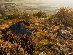 Bořeň (German: Borschen) is a phonolite hill in the Central Bohemian Uplands in the Czech Republic. It has an altitude of 539 m (1,768 ft) and is located in the territory of Bílina in the Ústí nad Labem Region. When seen from the northwest side, the hill has the shape of a lying lion. It is a structure similar to the Devils Tower in Wyoming, and is the largest phonolite structure of its kind in Europe.