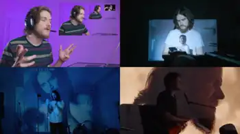 The Inside Outtakes shows behind-the-scenes takes, alternate versions of each song and scene in Inside, and insight into the production process.[35][36] It features 13 new songs, including alternate versions of "All Eyes On Me" and "Look Who's Inside Again", and short songs "Bezos III"; "Bezos IV"; and "Spider".[37][38] "The Future" contrasts Burnham's desires to have a daughter and effectively meditate with his unhappy reality.[38] "Five Years" celebrates a relationship anniversary,[37][38] and has been considered to be both a parody of Drake's songs and a reference to Burnham's relationship with Lorene Scafaria.[39] "Biden" is about his reluctance to vote for Joe Biden in the 2020 United States presidential election. Autotune-heavy "This Isn't a Joke" deviates to the topic of Burnham's birth scar. "The Chicken" dramatizes the scenario of the question "why did the chicken cross the road?"[38] It also includes other unused material, such as a podcast satirizing The Joe Rogan Experience and a parody of the Marvel Cinematic Universe (MCU).[40][41] The video references YouTube's advertisement system, including a countdown to adverts ("Ad in 5"), Inside-styled web banners, and fake video recommendations.[40][36]