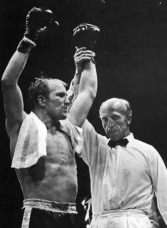 ![]() Bosse Högberg after victory against Werner Mundt at the program in Stockholm on 1 July 1966 | |