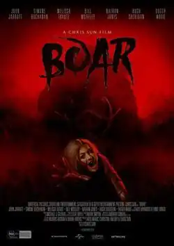 Boar is a 2016 Australian horror film written and directed by Chris Sun[1] about a young family that find themselves in the Australian countryside, being hunted by a bloodthirsty wild boar. The film stars Nathan Jones, John Jarratt, Christie-Lee Britten, and Melissa Tkautz, with special appearances by Chris Haywood and Steve Bisley.