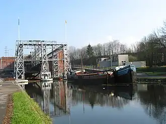 The lifts on the Canal du Centre are a series of four hydraulic boat lifts near the town of La Louvière in Belgium which are classified as a World Heritage Site by UNESCO. All four are located on the Canal du Centre in Belgium's historic sillon industriel industrial belt.