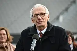 Bratina did not run for reelection in the city's 2014 municipal elections, opting instead to seek nomination as a Liberal candidate in the 2015 Canadian federal election.[33] According to CBC News, despite conflicts with council, Bratina's term as mayor saw the completion of a new stadium, development in the downtown core, low tax increases, and a move to solve the impasse in the local Randle Reef project.[34]