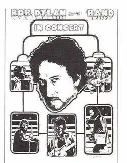 The show reunited Dylan with the Band on stage after the recording of Dylan's Band-backed Planet Waves album, and was the brainchild of David Geffen, who had lured Dylan to his Asylum Records label.[4][5] Dylan, who by this point in his career had developed a strong interest in his financial position,[6] had been dissatisfied with the terms of his Columbia Records deal.[4][5] Discussions about a tour took place among Dylan, the Band's guitarist and chief songwriter Robbie Robertson, and Geffen during the summer of 1973.[3] The intent was that Dylan would receive the bulk of the profits from the tour.[4] Promoter Bill Graham then booked a series of dates without telling the venues who the artist would be.[3]