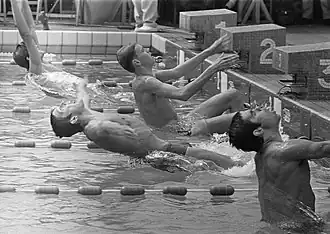 Bob Schoutsen (born 19 July 1951) is a retired backstroke swimmer from the Netherlands, who competed for his native country at the 1968 and 1972 Summer Olympics. His best individual result was sixth place in the 100 m backstroke (1:01.8) in 1968.[1] He won a bronze medal in the same event at the 1970 European Aquatics Championships.[2]