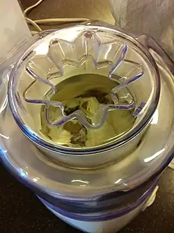 Boba ice cream bars consist of ice cream and boba. A mixture of whole milk, heavy whipping cream, sugar, vanilla, and any additional flavors are mixed in a bowl until the mixture is homogeneous. Once homogeneous, the mixture is poured into an ice cream maker. Boba typically consists of tapioca starch, sweet rice flour (mochiko), brown sugar, and water. The dough is rolled into tiny spheres. The spheres are cooked in boiling water. When done, it is cooled in an ice bath so that they do not stick together. The boba is then mixed in with the ice cream. The boba and ice cream mixture is then put into popsicle molds and put into the freezer until the popsicles are hardened.