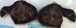- ^ a b c d Böttcher, Ronald (2014). "Phyllodont tooth plates of Bobasatrania scutata (Gervais, 1852) (Actinoperygii, Bobasatraniiformes) from the Middle Triassic (Longobardian) Grenzbonebed of southern Germany and eastern France, with an overview of Triassic and Palaeozoic phyllodont tooth plates". Neues Jahrbuch für Geologie und Paläontologie, Abhandlungen. 274 (2–3): 291–311. doi:10.1127/njgpa/2014/0454.