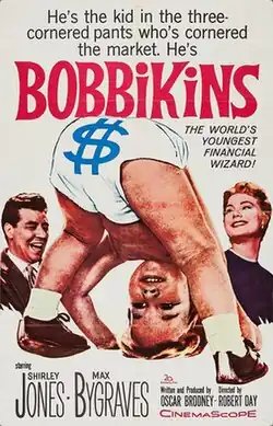 Bobbikins is a 1959 British comedy film directed by Robert Day and starring Shirley Jones and Max Bygraves.[1] It was written by Oscar Brodney and made in CinemaScope and released by 20th Century Fox.[2] It was produced by the British subsidiary of 20th Century Fox and shot at Elstree Studios.
