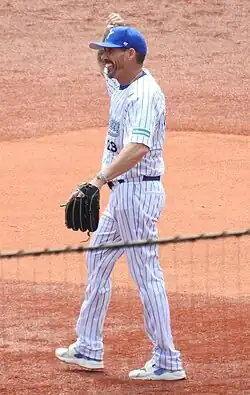 Rose's NPB career spanned eight season from 1993–2000.[6] During that time, he won six Best Nine Awards and was selected to four All-Star Series.[15][16][17][18][19] Defensively, he played predominantly as a second baseman in NPB, with limited appearances at first base and third base.[6] In 1998, he was awarded the Golden Glove Award for second basemen.[20] He is often regarded as one of the best foreign players in BayStars and Japanese professional baseball history.[21][12][22] For the BayStars 70th anniversary in 2019, Rose was voted by fans as the best second baseman in the team's history.[21]