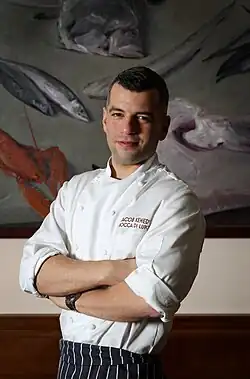 The restaurant was started by chef Jacob Kenedy and his business partner Victor Hugo in 2008,[3] with funding and advice from Kenedy's entrepreneur uncle David Cleevely.[2] Kenedy, who attended the University of Cambridge,[4] and Hugo had both worked at Moro restaurant in London's Exmouth Market before starting Bocca di Lupo.[3] The restaurant was so successful that it was described as "profitable within weeks"[2] despite, or because of, opening at "the height of the credit crunch".[5]