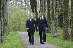 The venue was used by President Vladimir Putin to host US President George W. Bush in 2008. Putin is also reported to have used the residence to celebrate the birthday of his rumoured partner Alina Kabayeva, and was reported to have stayed inside during the peak of the COVID-19 pandemic. In 2024, the Russian independent investigative outlet Proekt reported that the residence's main building had been demolished and replaced by a construction project in the beginning of the year, and that Putin had stopped visiting the venue since March 2024 due to concerns over a possible drone attack by Ukraine.[3]