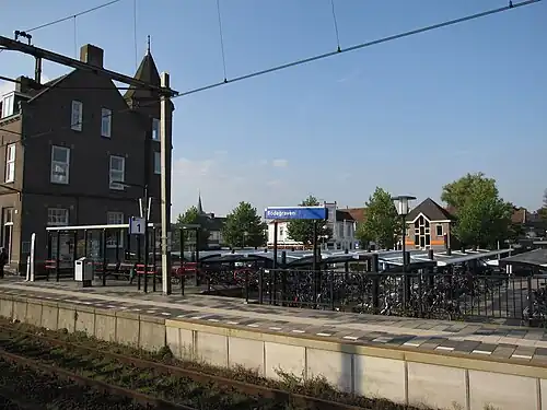 Bodegraven is a railway station in Bodegraven, Netherlands. The railway station was opened in 1878, when the rail connection between Leiden and Utrecht was opened. The first station building had to be demolished in 1894 as a result of subsidence. The second building was destroyed in a fire in 1911. The current station was built in 1913.