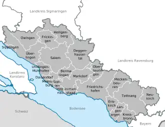 Bodenseekreis ("Lake Constance district") is a Landkreis (district) in the south-east of Baden-Württemberg, Germany. Neighboring districts are (from west, clockwise) Konstanz, Sigmaringen and Ravensburg, and in Bavaria, Lindau district. To the south, on the opposite shores of Lake Constance, lies Switzerland.